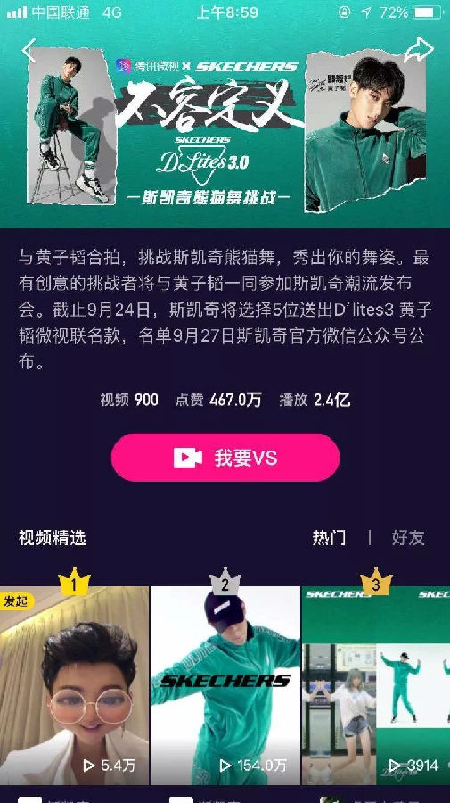 這(zhè)是(shì)一(yī)個(gè)粉絲成為(wèi)核心β•>¥生(shēng)産力的(de)時(shí)代,當品牌代言人(rén)成為(wèi)模式化(₹ huà)的(de)必選項時(shí),如(rú)何打破千篇一(yī)律的(d☆λ±e)套路(lù),把代言人(rén)的(de)魅力發掘到(dào★™☆₩)最大(dà)?斯凱奇邀請(qǐng)其代言人(rén),同©₹₽←樣也(yě)是(shì)微(wēi)視(shì)代言人(rén)之一(yī¥♦)的(de)黃(huáng)子(zǐ)韬,在微(wēi)視(shì)發起#斯凱奇熊貓舞₩✔γ±(wǔ)#活動。有(yǒu)趣又(yòu)接地(dì)氣的(de)合拍(pāi)鬥舞(w ¶ ǔ)挑戰,讓從(cóng)前遙不(bù)可(kě)及的(de)愛(ài)豆一(yī)≤★☆下(xià)子(zǐ)變得(de)觸手可(kě)及,一(yī)舉觸發了(le)粉絲大(dà)軍$ ¥參與欲望。